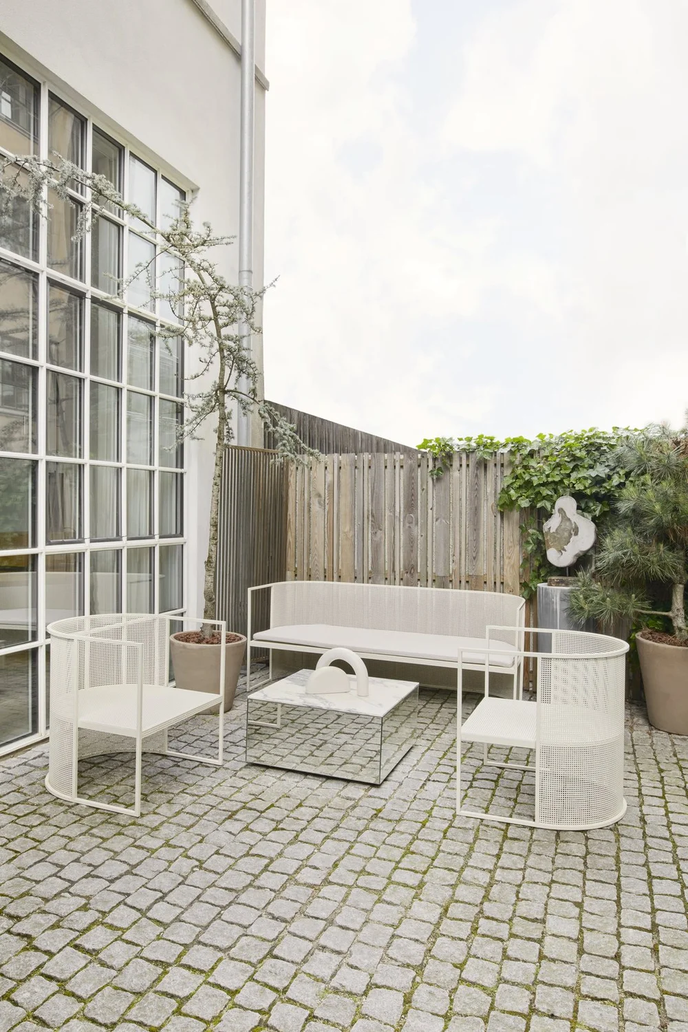 Don’t you just love her sculptural objects and that patio furniture? I would love to have that personally, but I don’t have outside space as a city dweller living high up in a German altbau on the 2nd floor (American 3/4 floor). But if I did, I’d love to own the beige patio furniture shown above – it’s gorgeous – here are the links: Bauhaus Lounge Bench and Bauhaus Lounge Chair.